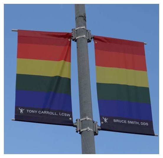 Above left, 2015 OutSmart ad, Love it! Above right, Pride Banner on Westheimer