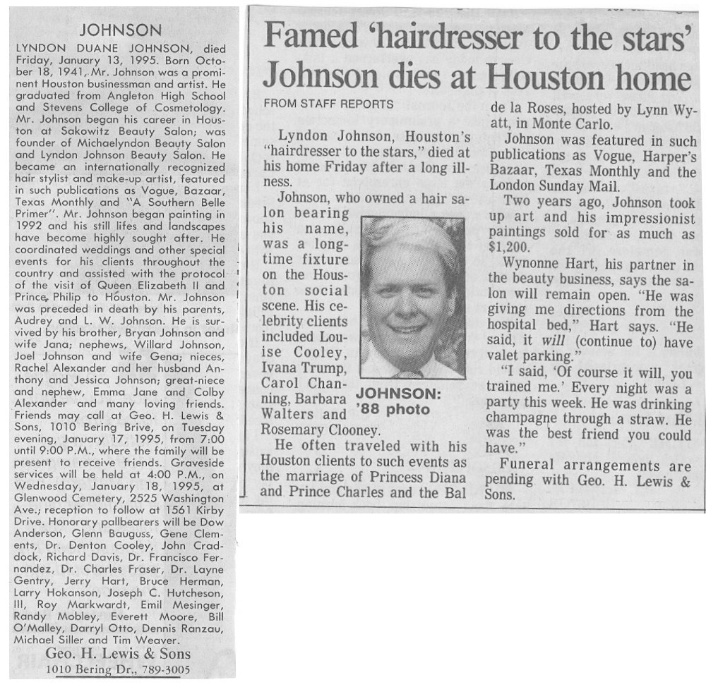 He was a hair stylist to the River Oaks elite, as evidenced by Dr Denton Cooley being one of the speakers