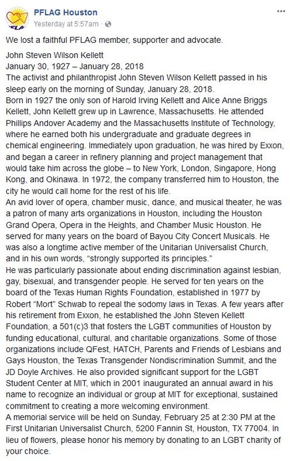 John Steven Wilson Kellett January 28 2018 Age 90, Houston