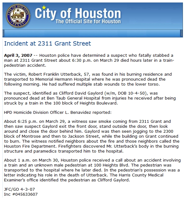 partner: Clifford David Gaylord March 30, 2007 Age 56, Houston