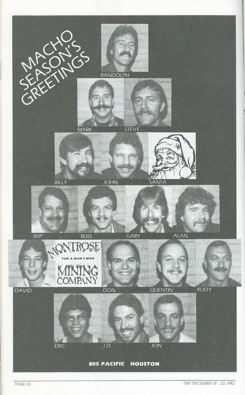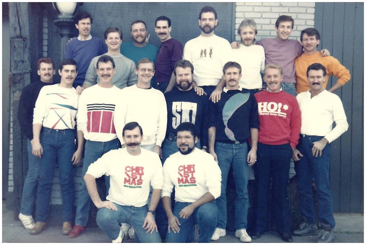 above, Mining Company Xmas 1982 staff photo, top of the tree below, in Mining Company Xmas 1986 staff photo, middle row, far right