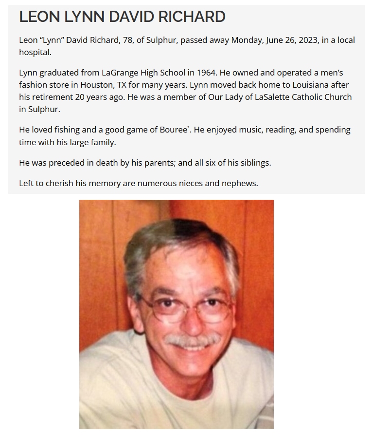 Age 78, Houston, Sulphur (LA)