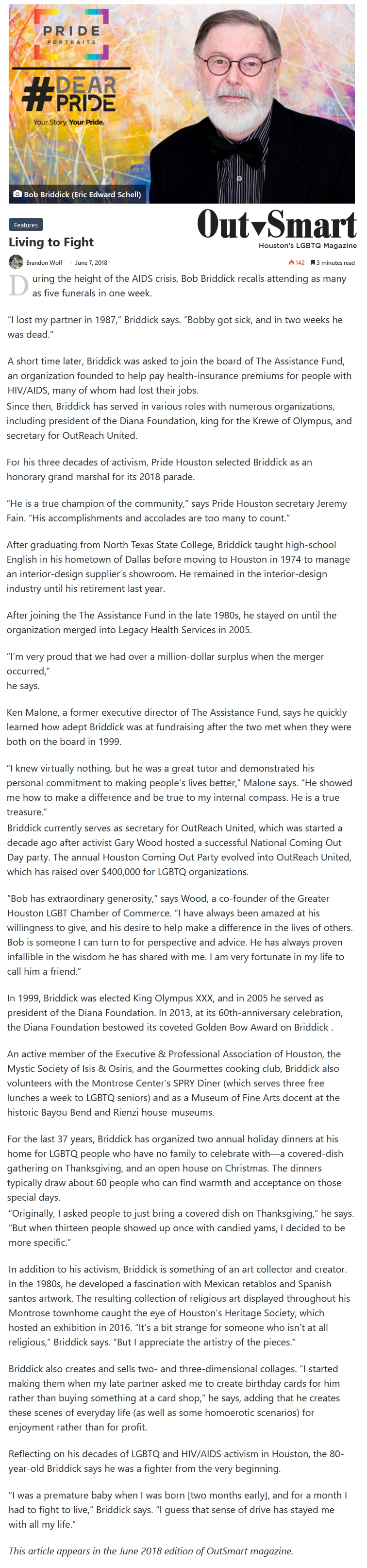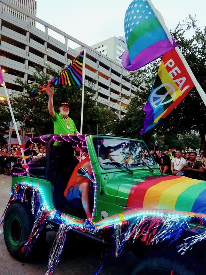 Above, Bob as a nominee for Pride Grand Marshal in 2014