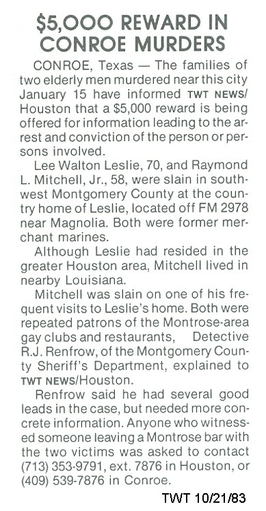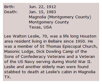 Lee Walton Leslie January 15 1983 Age 70, Conroe (N. Houston area)