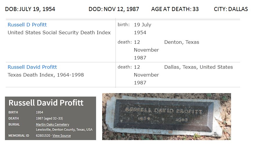 Age 33, Dallas. AIDS (probably)