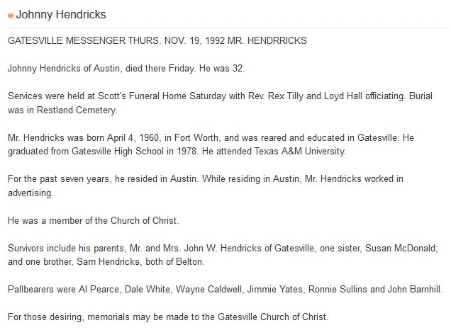I do not know if the obit below is for the same person, but the data sure seems to fit, placing DOD at 11/13/92