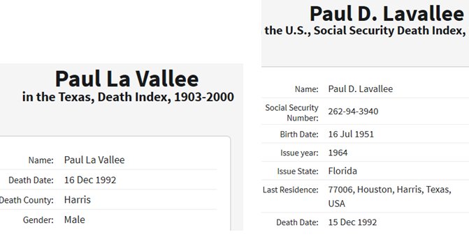 at least per SSA data, name misspelled in both obituaries